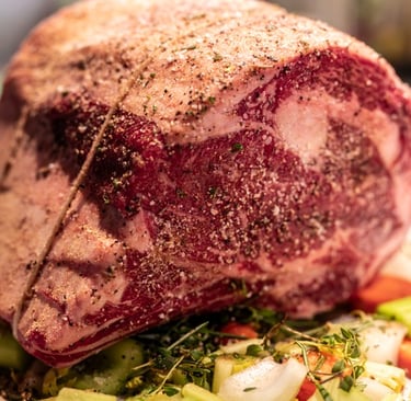 The rib roast cut comes from the rib primal section and features the marbling that makes it one of the most flavorful cuts of meat available. When you source grass-fed beef from Texas farmers and rancher practicing regenerative agriculture, you're getting beef with a cleaner beefy flavor profile and superior omega-3 fatty acid content compared to grain-finished alternatives.